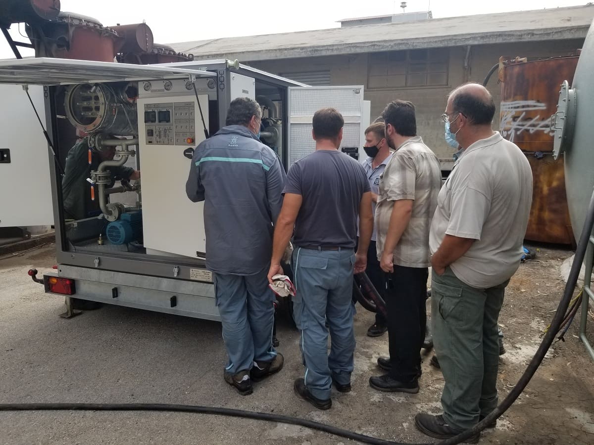 Барлық карантиндік шараларды сақтай отырып, жаңа жабдықтармен жұмыс істеу үшін операторларды оқыту жүргізілді. CMM – 12R қондырғысының мүмкіндіктерін көрсету аясында 40 жастағы ескі трансформатордан ағызылған электр оқшаулағыш майды регенерациялау жүргізілді. Қондырғы оператордың қатысуынсыз майды автоматты режимде регенерациялап, майды жаңа күйге дейін толық қалпына келтірді.