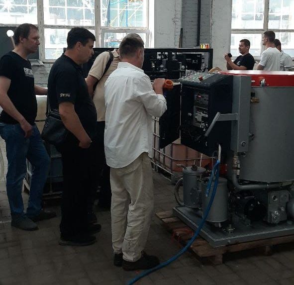 Сапар барысында қонақтарға сәйкесінше термиялық вакуумда кептіруге және трансформатор майын регенерациялауға арналған CMM-4LT және CMM-6RL қондырғыларының өнеркәсіптік үлгілері көрсетілді. Қондырғылар қонақтар өздерімен бірге алып келген пайдаланылған трансформатор майын өңдеді. Өңдеу сапасын бақылау мұнай регенерациялау жабдығы арқылы өткенге дейін және одан кейін сынамалар алу арқылы жүзеге асырылды. Үлгілер GlobeCore шығарған TOR-80 (үзіліс кернеуі) және TOR-3 (диэлектрлік шығын тангенсі) аспаптарында талданды.